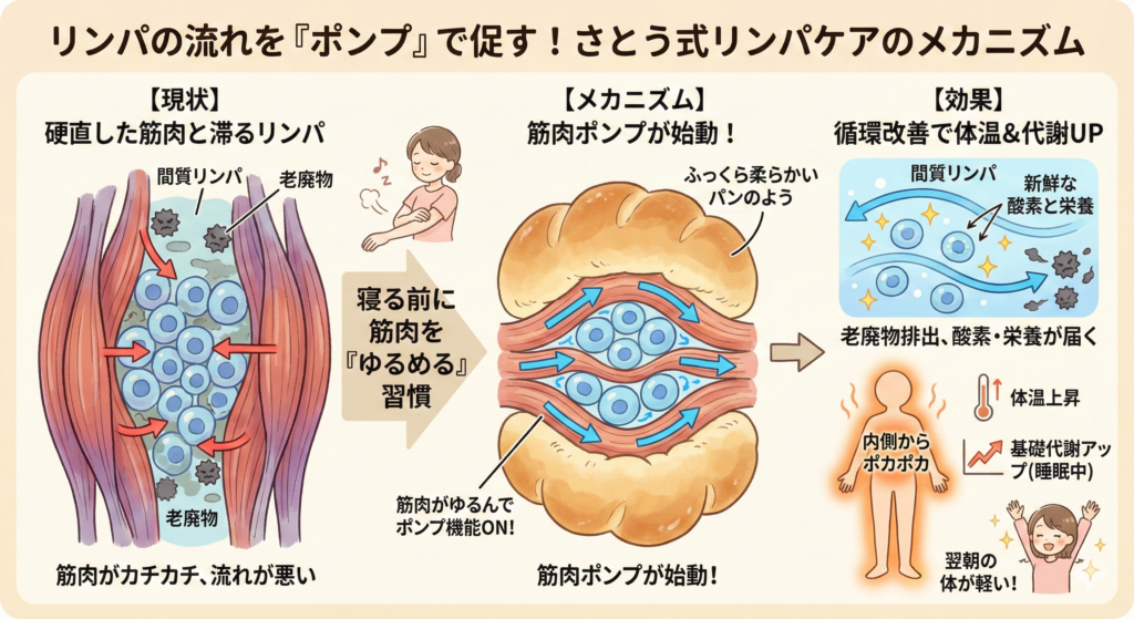さとう式リンパケアで筋肉をゆるめ基礎代謝を高める